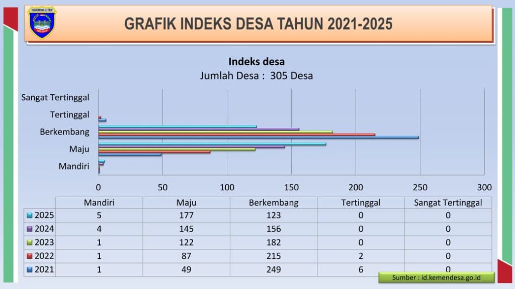 Berdasarkan data terakhir Indeks Desa (ID) Tahun 2025 Untuk desa mandiri saat ini berjumlah 5 Desa, transformasi ini menunjukkan bahwa strategi pemberdayaan masyarakat yang dilakukan berjalan efektif dan tepat sasaran.